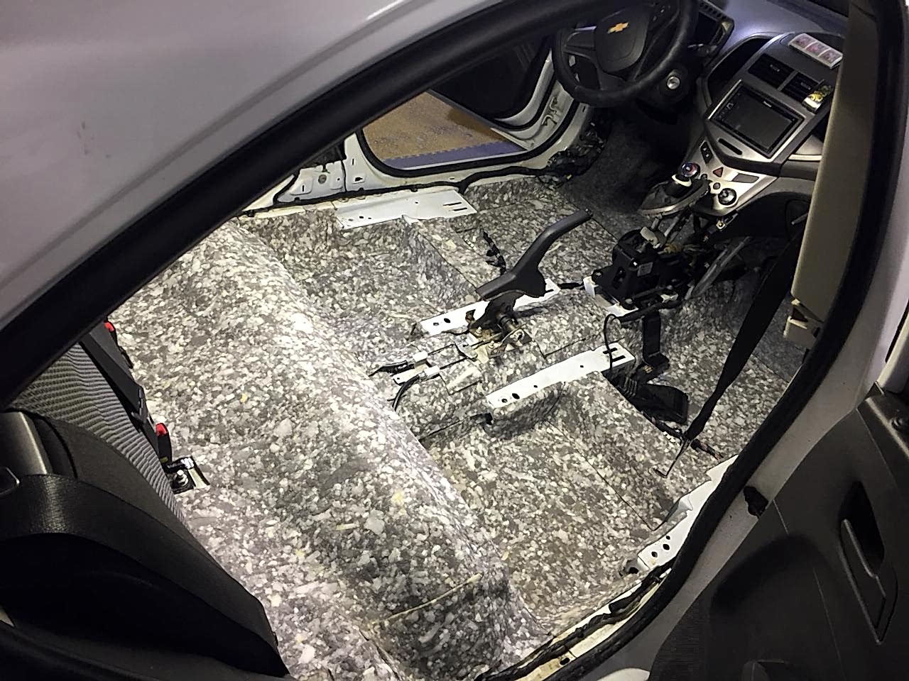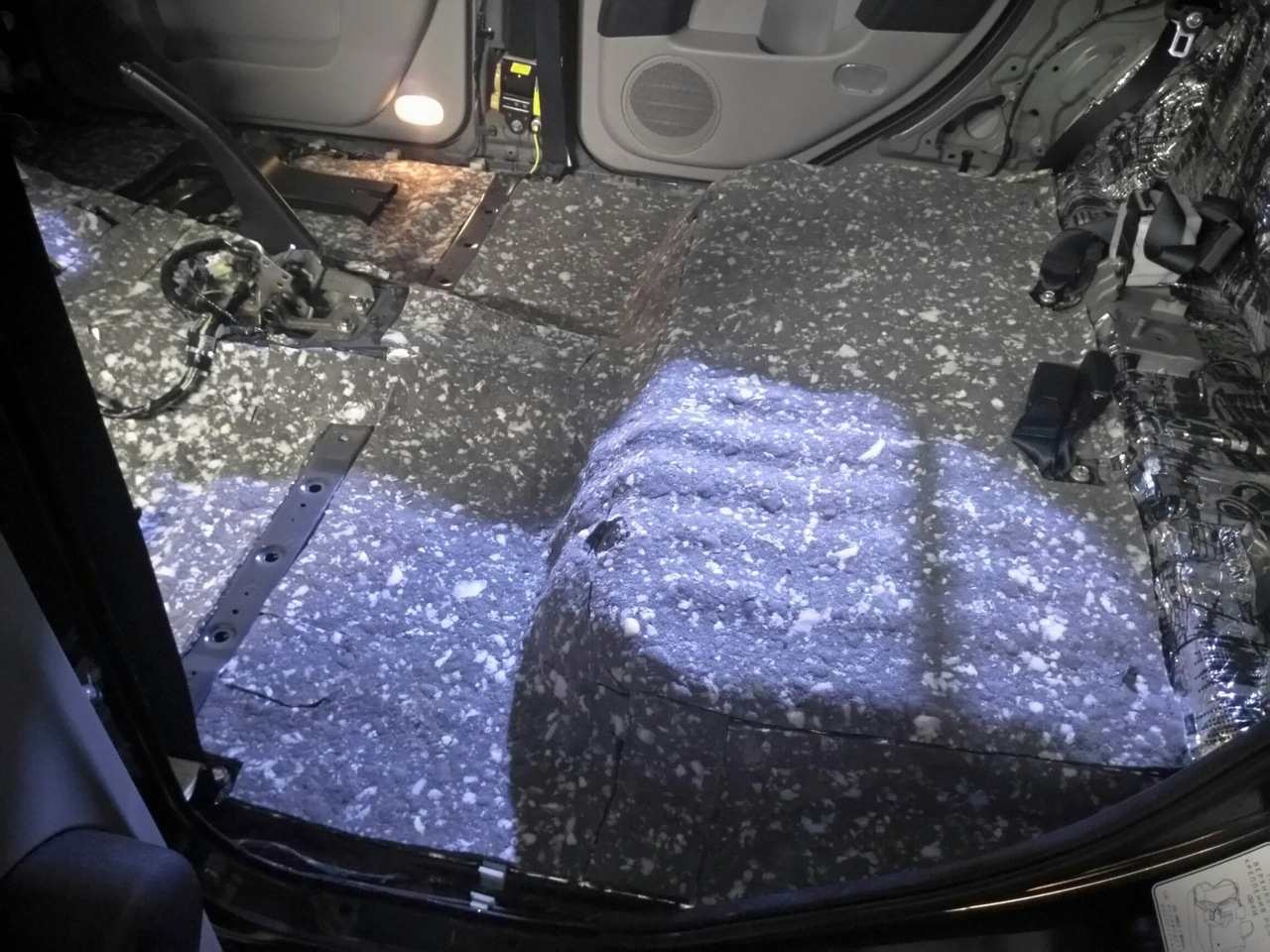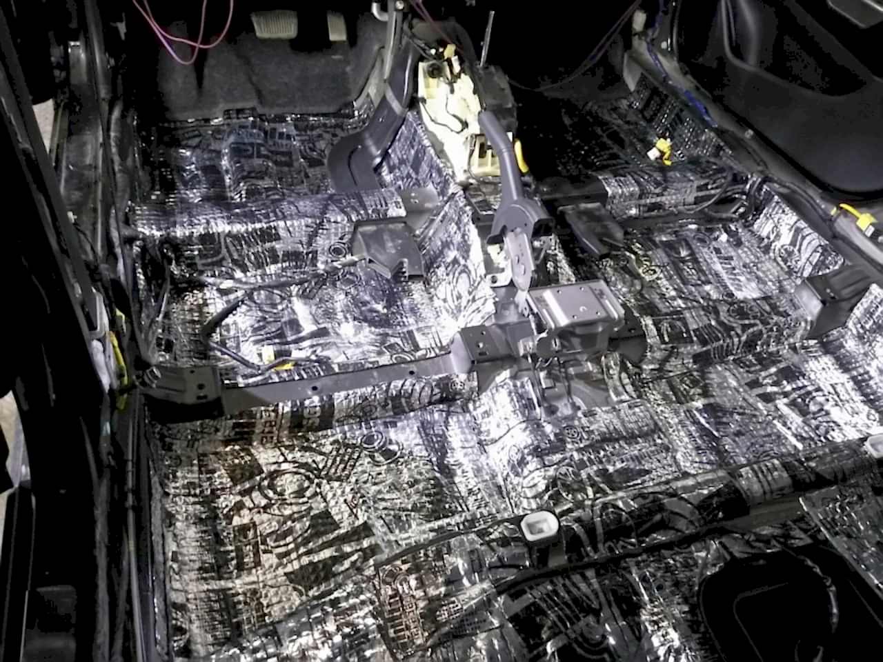 - пол. Шумоизоляция пола не только значительно уменьшает посторонние шумы, но и очень хорошо работает как теплоизолятор. Материалы, которые используются для шумо-виброизоляции пола, имеют толстую битумную основу, поглощающую вибрации кузова. Средняя цена на виброшумоизоляции пола от 17000₸.;
