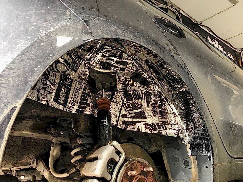 - арка колес- самая распространенная услуга, арки являются главным источником шума, т.к. находятся сразу после колес. Этот вид работы выполняют с использованием плотных материалов с повышенным коэффициентом демпфирования и в качестве шумоизолятора используются специальные влагостойкие материалы. Средняя стоимость шумоизоляции арок от 4000₸. (за 1 арку);