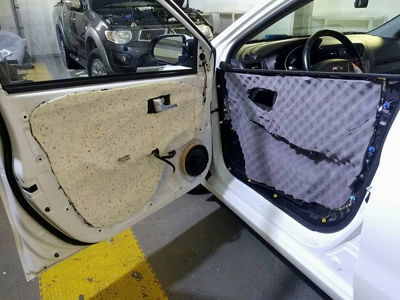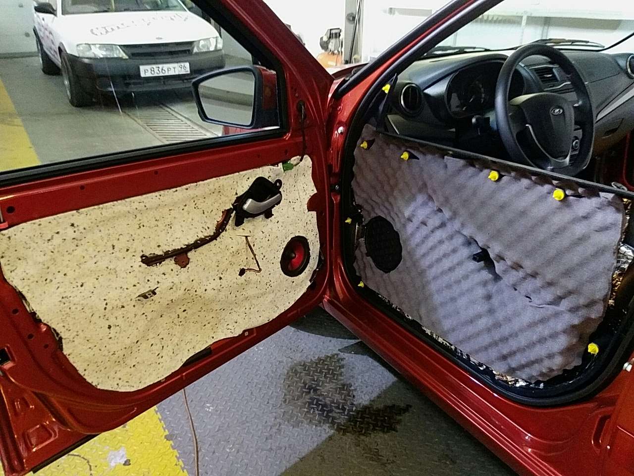 - дверь. Двери занимают большуюплощадь Пушкина, 59, являются самым распространенным источником различных шумов. Обе поверхности корпуса двери в салоне проклеиваются звукопоглощающим и вибродемпфирующим материалом. Все пластиковые детали обклеиваются антикскрипными материалами, цена на шумоизоляцию дверей от 4000₸. (за 1 дверь);