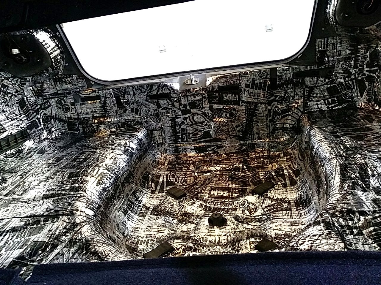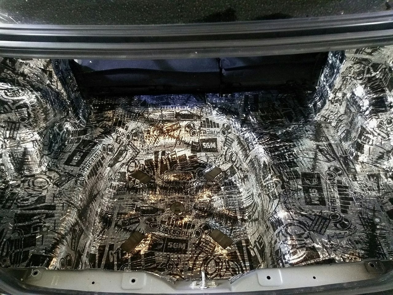 - багажник. Проклеивать багажник предпочтительно для авто с типом кузова универсал, хэтчбек. Металл Pin-Up шумоизоляцией высокого класса, все пластиковые детали обязательно проклеиваются антискрипными и противошумными материалами.