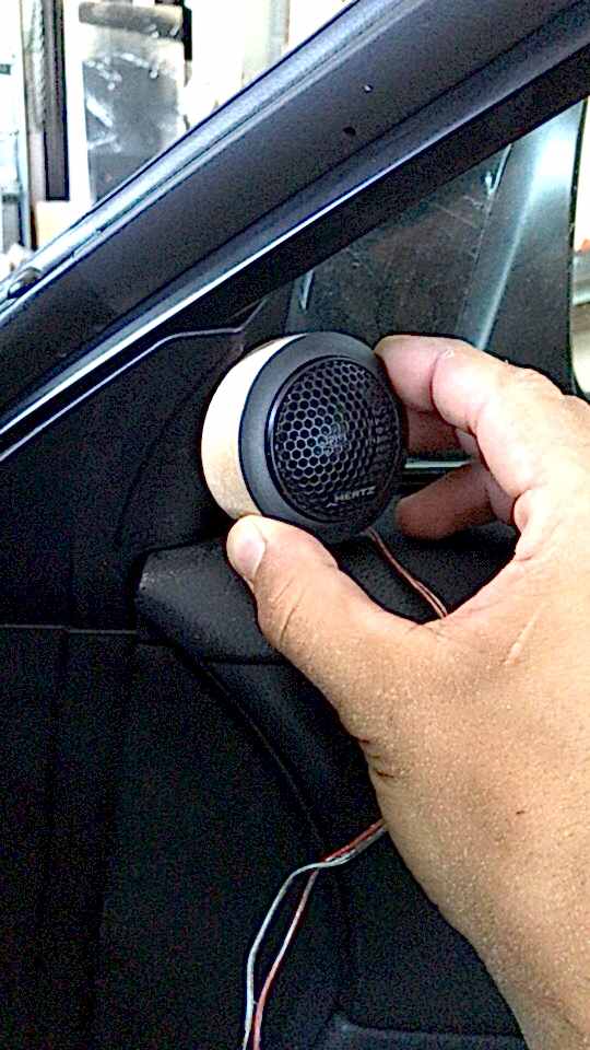 Высокочастотные динамики фирмы Hertz были установлены уголки зеркал в изготовленные нашими мастерами Pin-Up