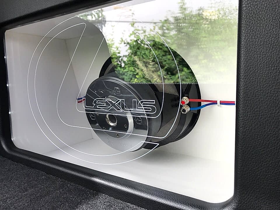 Торгово-установочный центр МегаЗвук посетил Lexus ES350 на замену акустики с изготовлением подиумов под твиттеры. На фронт установлена 3-х полосная система, мидбасы 20см URAL W200 отлично встали в штатные места после изготовление специальных проставочных колец, среднечастотные динамики URAL W87 заняли Pin-Up место в панели в спецально изготовленными под них корпусами.
